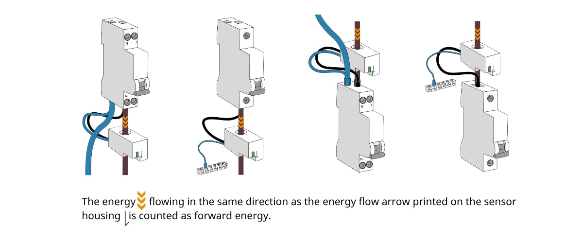The blue cable connects to power supply from Neutral and voltage meaurement.